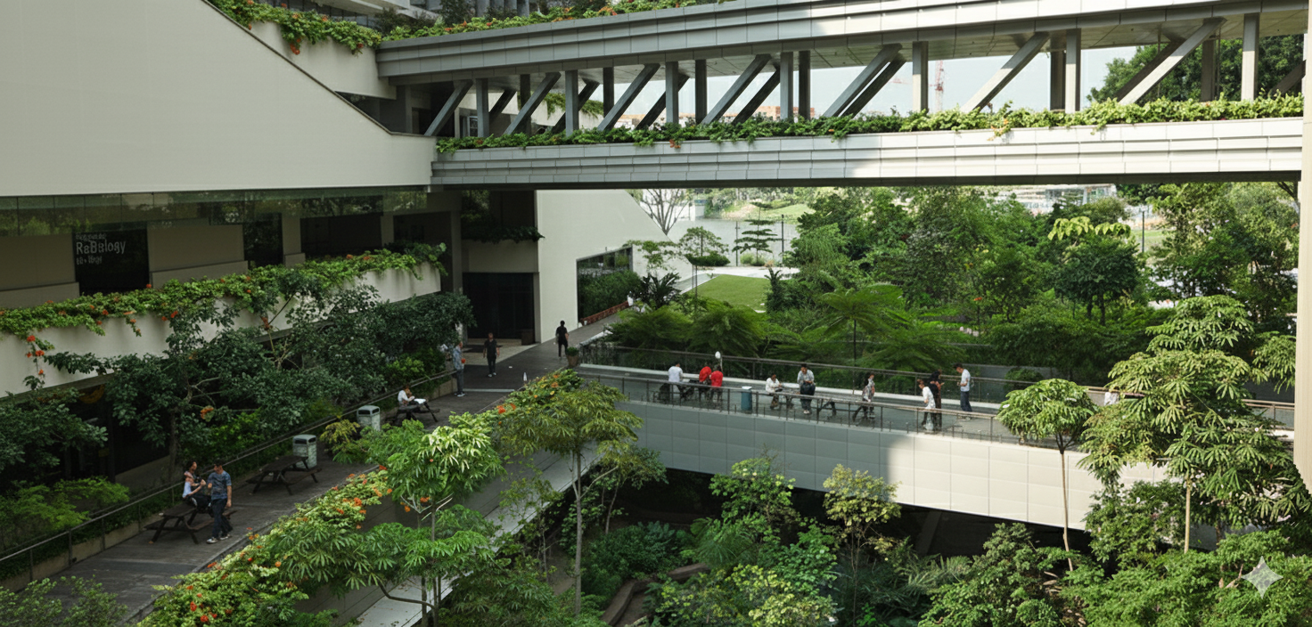 KTPH 的建築設計讓綠意成為空間的一部分,多層垂直綠化、花園露台與半戶外動線,沿著建築立面與主要行走路徑展開,