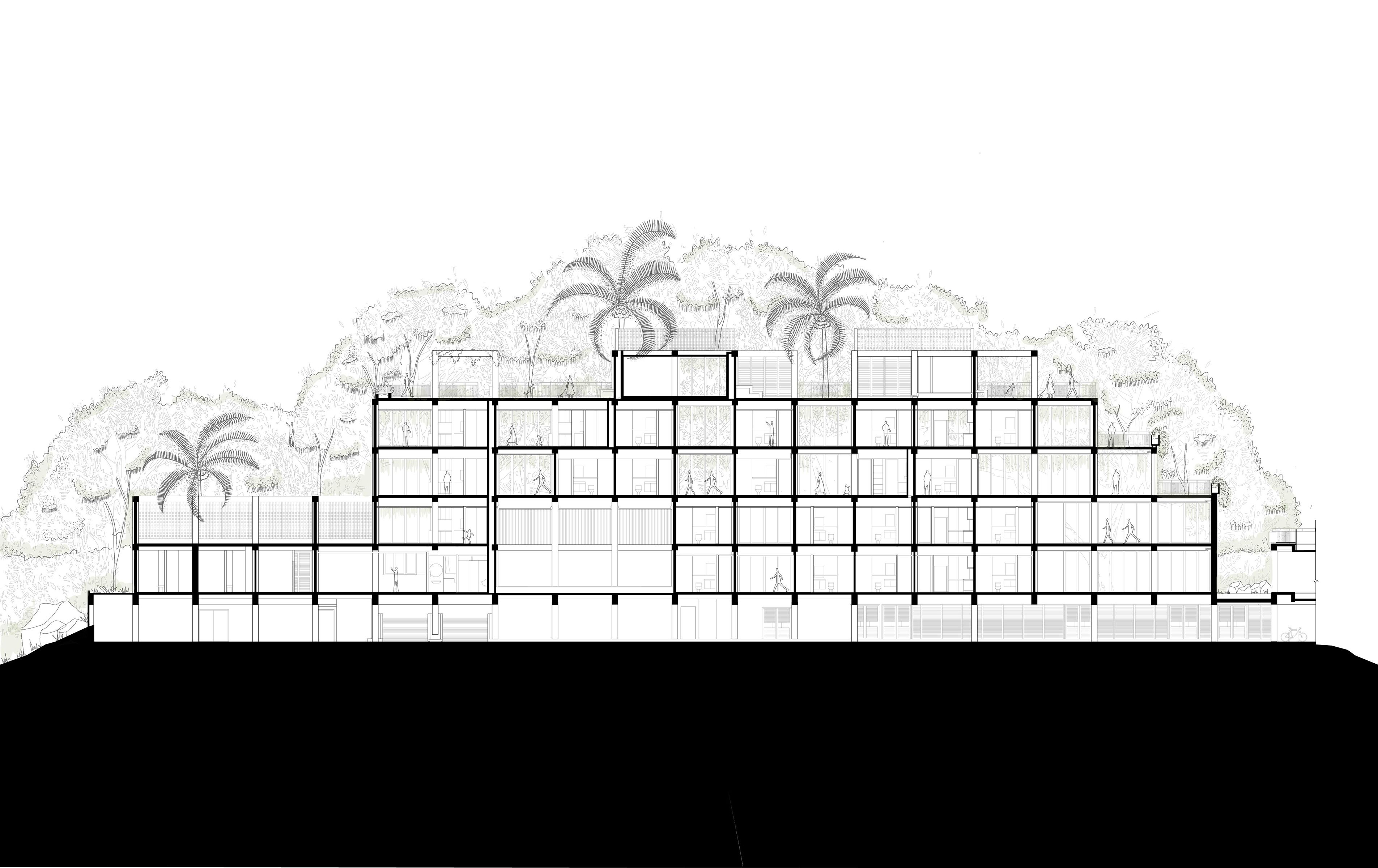 不規則的退台設計成為私人露臺(資料來源:Sordo Madaleno | The Village)