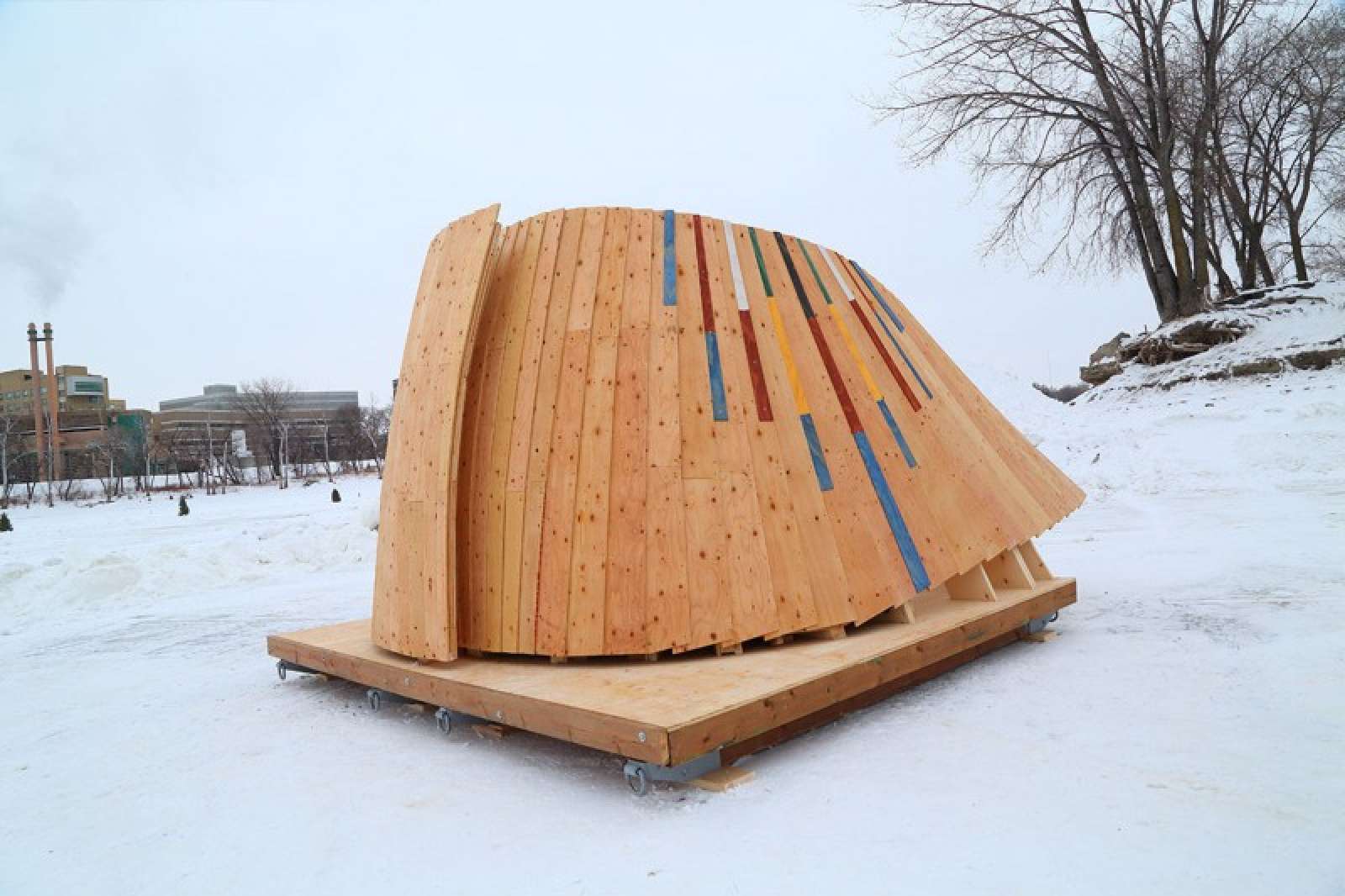 Winnipeg Warming Huts是加拿大溫尼伯市冬季的一項年度藝術與建築活動,每年主辦單位都會舉辦國際性的「冰上藝術與建築競賽」,邀請世界各地建築師、藝術家和設計師在冰封的公共步道上設計一座座獨特、兼具功能性和美感的臨時休息小屋。
