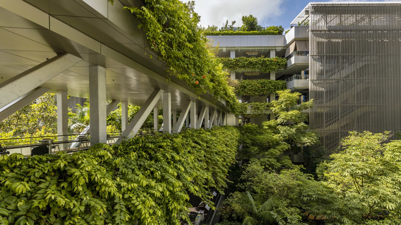 綠意沿著建築立面層層展開,成為行走動線的一部分。(資料來源:CPG Consultants)