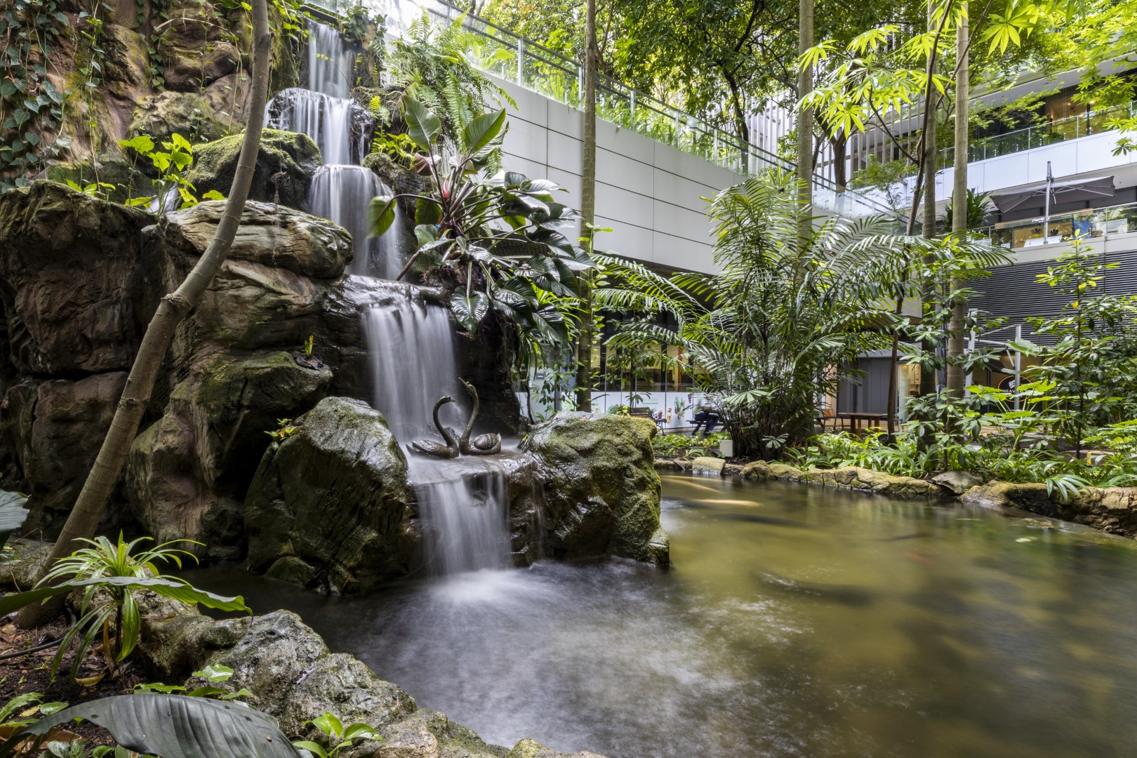 水景與植栽共同調節空氣與溫度,形成自然流動的舒適微氣候。 (資料來源:CPG Consultants)