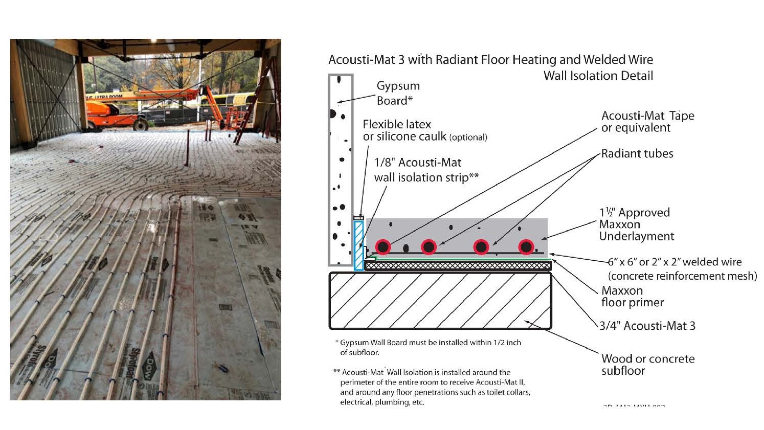 在樓板構造中,建築採用 impact isolation 系統,並搭配 Acoustimat 3 HP 隔音墊,將腳步聲與撞擊音吸收於結構層。