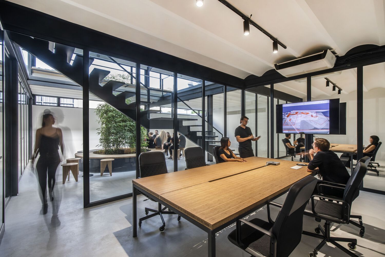 建築強調無階層、無明顯隔間的開放式空間配置,營造自由交流與平等合作的氛圍。屋頂使用光伏玻璃天窗,讓室內沐浴在自然光中,也可以透過太陽能提供室內電源,實現建築能源自足。建築中央種植竹子,不僅建立視覺與空間的連結,也有效改善空氣品質。同時利用拆除舊建築的建材,回收建置戶外花園,這樣的空間設計不僅模糊了工作與社交的界線,更讓人感受到與自然互動的和諧氛圍。